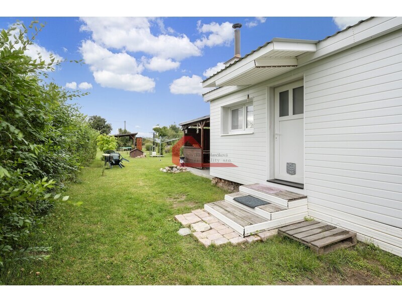 Na pozemku se nachází nejen mobilheim s plochou 37,8m2 a dispozici 3+1, ale