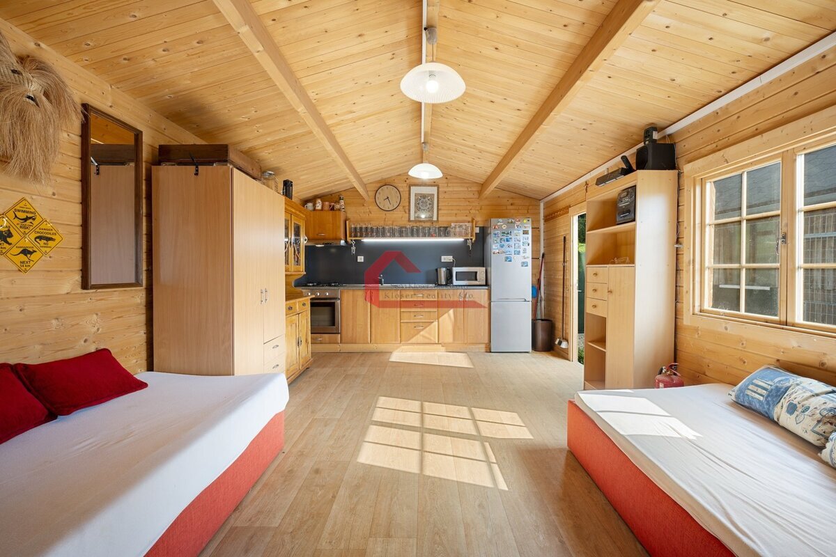 V domku je nejen kuchyňská linka , ale díky umístění dle platného